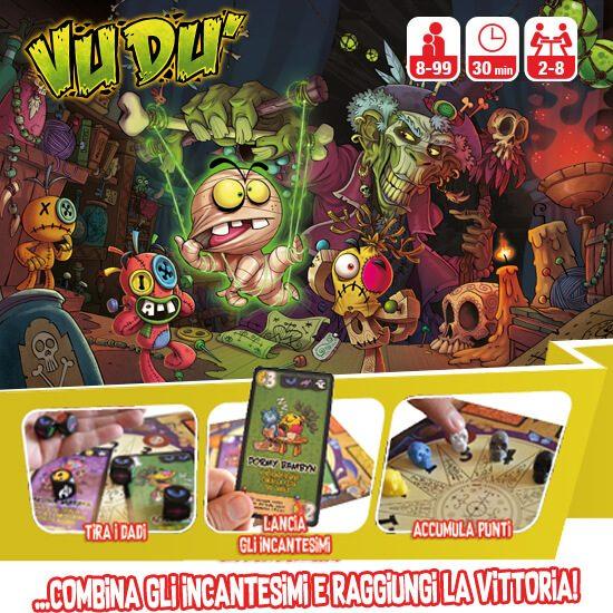 VUDU’ è un party game che consiste nel lancio di “maledizioni” contro gli avversari al fine di raggiungere la vittoria ottenendo un totale di 11 punti.